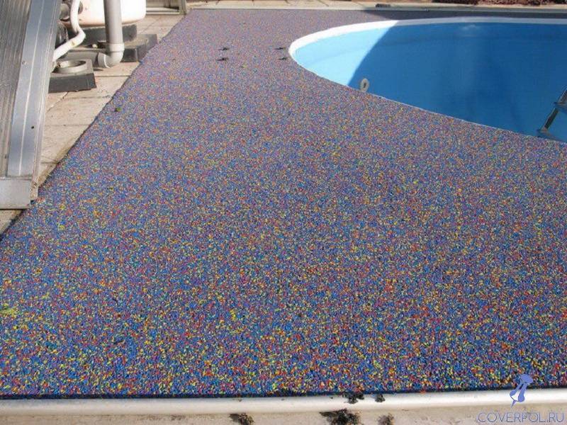 Изготовлено из высококачественных резиновых гранул с добавлением 15% цветного EPDM и полиуретанового связующего, что обеспечивает прочность и эластичность.